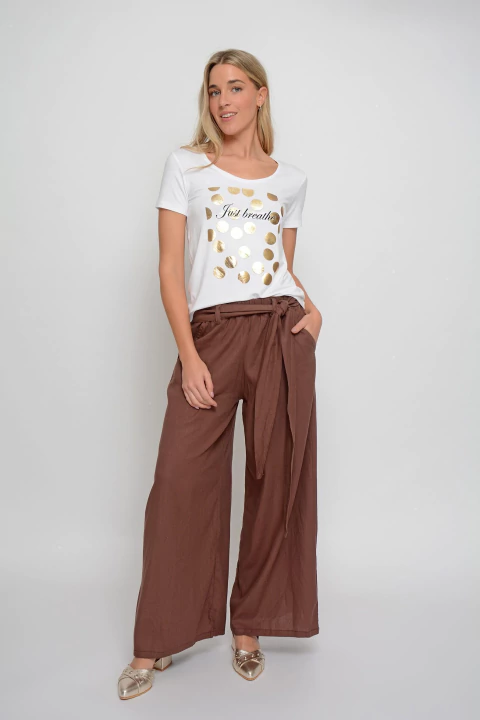 Palazzo TOLKIEN de lino elastizado con lazo cruzado (2043)
